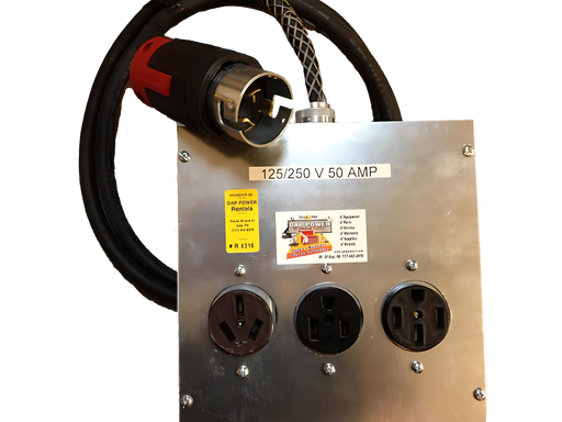 We rent 50 amp "spider box" distribution devices that have single phase 120 and 240 volts. Any requirements beyond that, as in hard wiring temporar...