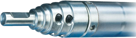 Used for horizontal bore jobs. Allied underground piercing underground boring and pipe pushing/pulling missle tools are the most efficient, least expensive method for underground pipe or service placement in construction and installation work. Pneumatic Hole Hog missiles open clean, compacted, self contained tunnels for pipes, cables, conduits, or wiring at the lowest cost per foot. Hole Hogs eliminate the need to break pavement or disturb landscaping from trenching or open cuts. There's no reason to disrupt traffic by tearing up and restoring asphalt or concrete or callbacks for settling backfilled trenches. Hole Hogs break through the ground while horizontal boring under roads, driveways sidewalks, parking lots, runways, foundations, or virtually any obstacle. Also known as a pneumatic gopher or under driveway boring machine. Used for trenchless boring. Sometimes called tool to drill under driveway or small boring machine.