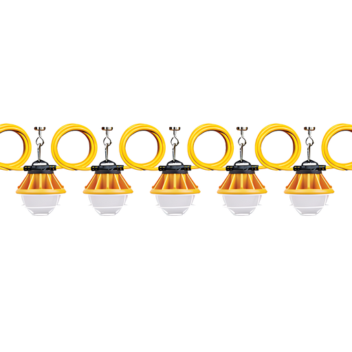 5 Lights, 3000 Lumens per light, daisy chain for longer than 50'.