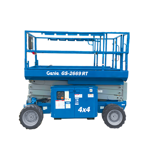 View full detailsAll-terrain 4x4 scissors lift - diesel The Genie GS2669RT Mid-Size scissor lift combines solid and powerful design elements to meet the demands of...