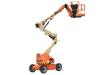 The revolutionary JLG E400AJPN battery powered system runs the quiet, emission-free and efficient operation of a 48V DC. The E400AJPN's enhanced design helps get you where you need to go, quickly and easily. The 3 ft. inside turning radius delivers excellent maneuverability. It includes a 6 ft articulating jib boom to provide a large range of motion. This 2WD is the fastest boom in its class. It travels 3.2 mph with 30% gradeability. The standard 30" x 60" all-steel platform lifts up to 500 lb and provides space for two workers and their tools. This type lift is also referred to as a bucket, bucket truck, man lift, stick lift, straight lift AWP aerial work platform, high reach lift or cherry picker or aireal lift or MEWP or mobile work elevating platform or interior power lift or hi lift or high lift or person lift or electric indoor boom lift or bucket lift.