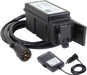 The trailer mount power module unit utilizes standard sealed 8 foot blade style 7-way connector or adapts to a 4-way flat connector (clearance lights must be turned on when using 4-way). Unit mounts on trailer tongue magnetically.