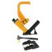 This high-speed, air-powered flooring cleat nailer rental offers better productivity than non-pneumatic nailers. It drives L-shaped 1 1/2-inch to 2-inch flooring cleats precisely and at the proper angle and depth into 3/4-inch hardwood flooring every time. Gap Power also has spacers for 5/8-inch or 1/2-inch flooring. This hardwood floor nailer is made of aircraft-grade aluminum for job site durability and low weight. It also has an extra-wide composite base plate for added stability. The nailer's long-reach handle gives users added comfort and control. This nailer provides 420 in./lbs. of driving power, and has an operating pressure of 60 to 100 PSI. It shoots 1 1/2-inch to 2-inch fasteners, and has a generous 110-fastener magazine to reduce the time you spend reloading. One box of our flooring nails covers 200 square feet. Your rental also includes a mallet.
